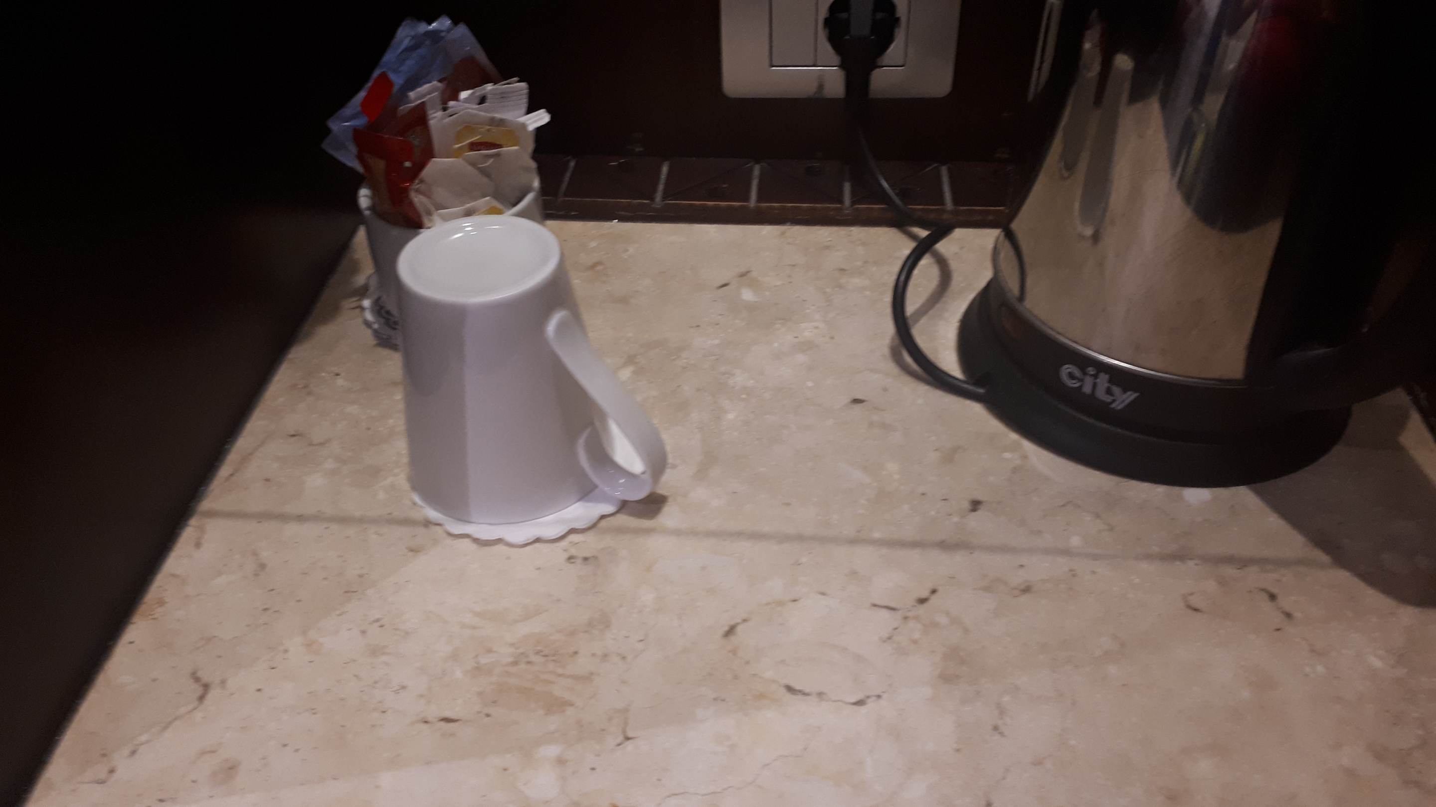 Anreise Tag. Klebrige Substanz im Eck von Tee kaffeeeck. Ekelhaft.