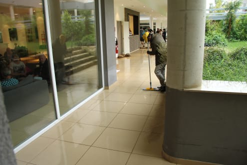 Überall wird Wasser weggewischt