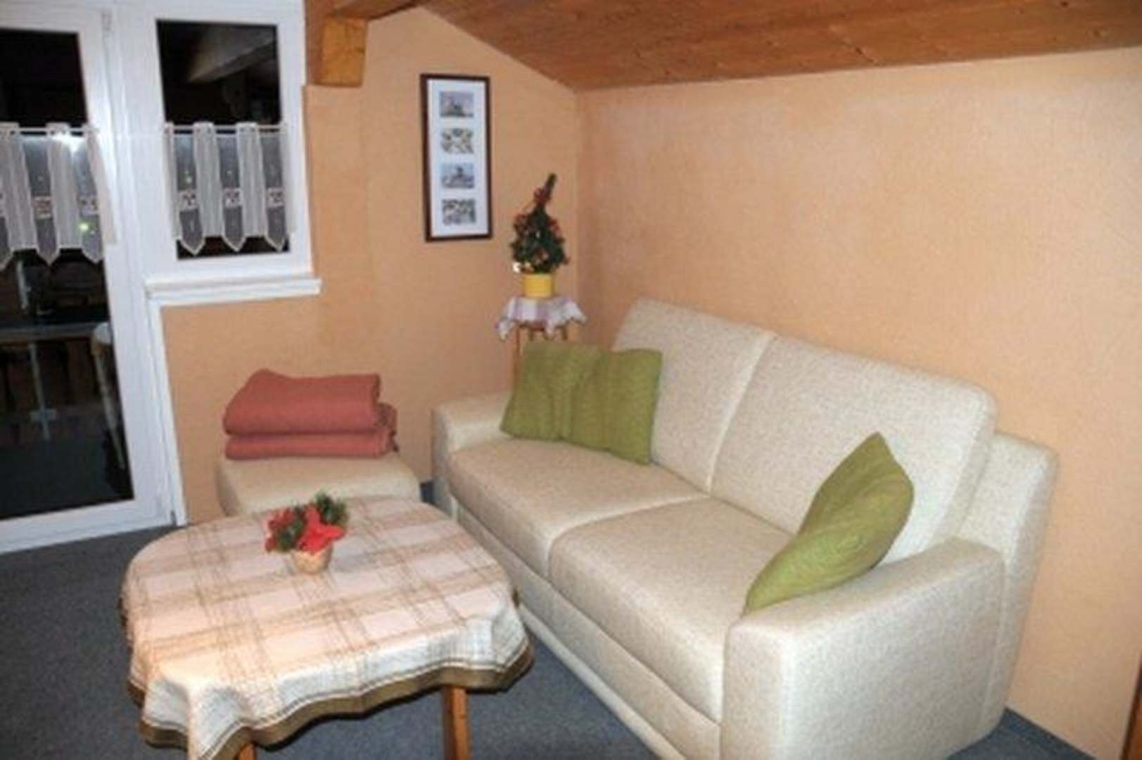 Wohnküche mit Couch in der FeWo Florian