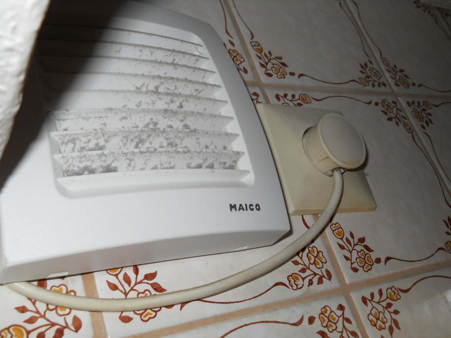 der Blick auf die Belüftung des Toilettenraums....ist ein schöner Anblick morgens nach dem Duschen.....längere Zeit nicht mehr gereinigt....der Ausgang der Belüftung endet direkt über der Balkontür...also Fenster zu machen...