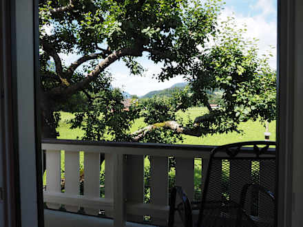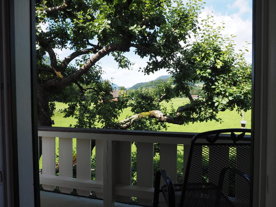 Blick aus dem Zimmer auf den Balkon Gästehaus Burghartswieser