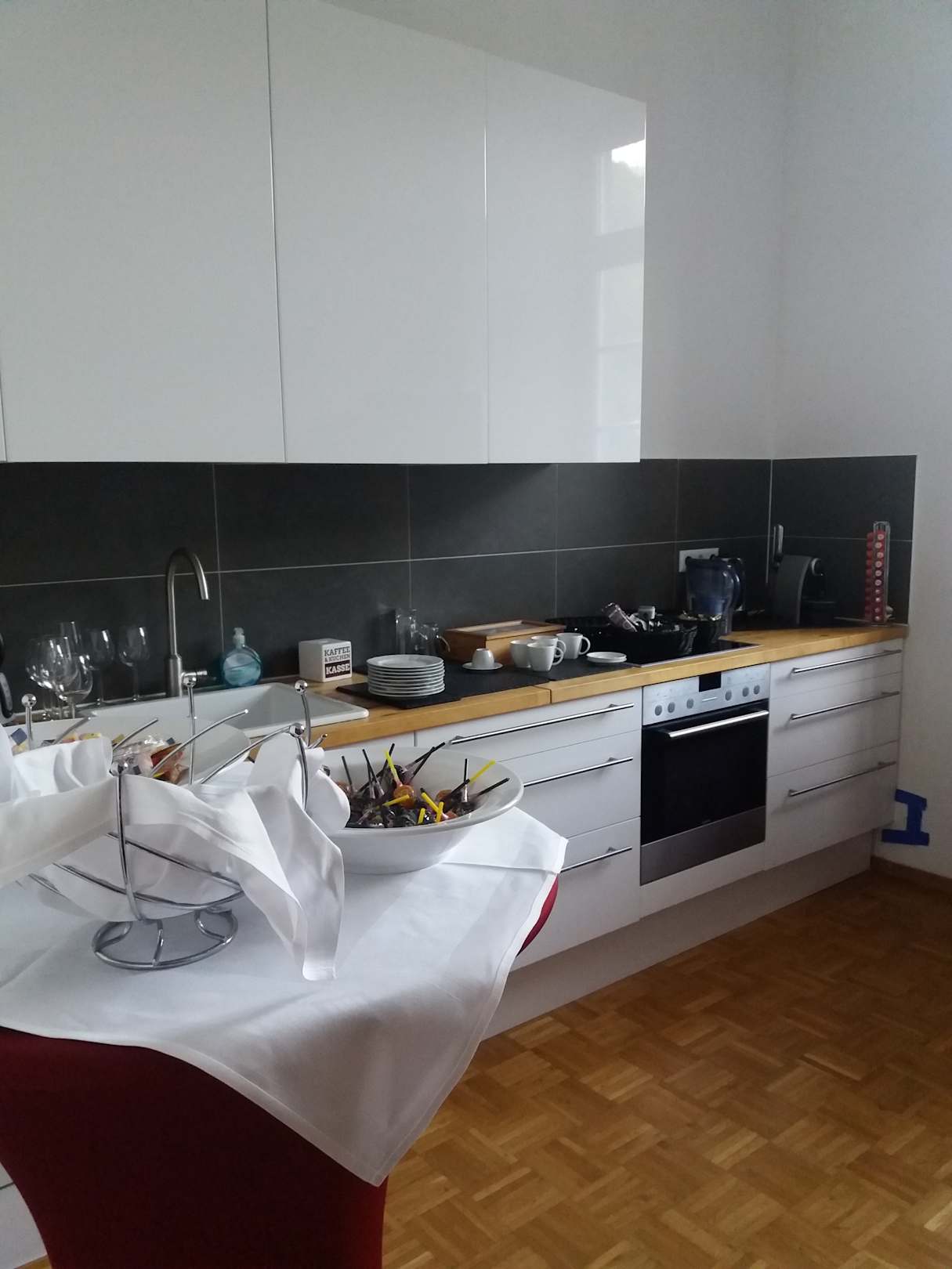 Küche mit Kaffee, Tee und Süßigkeiten zur Selbstbedienung , toll!