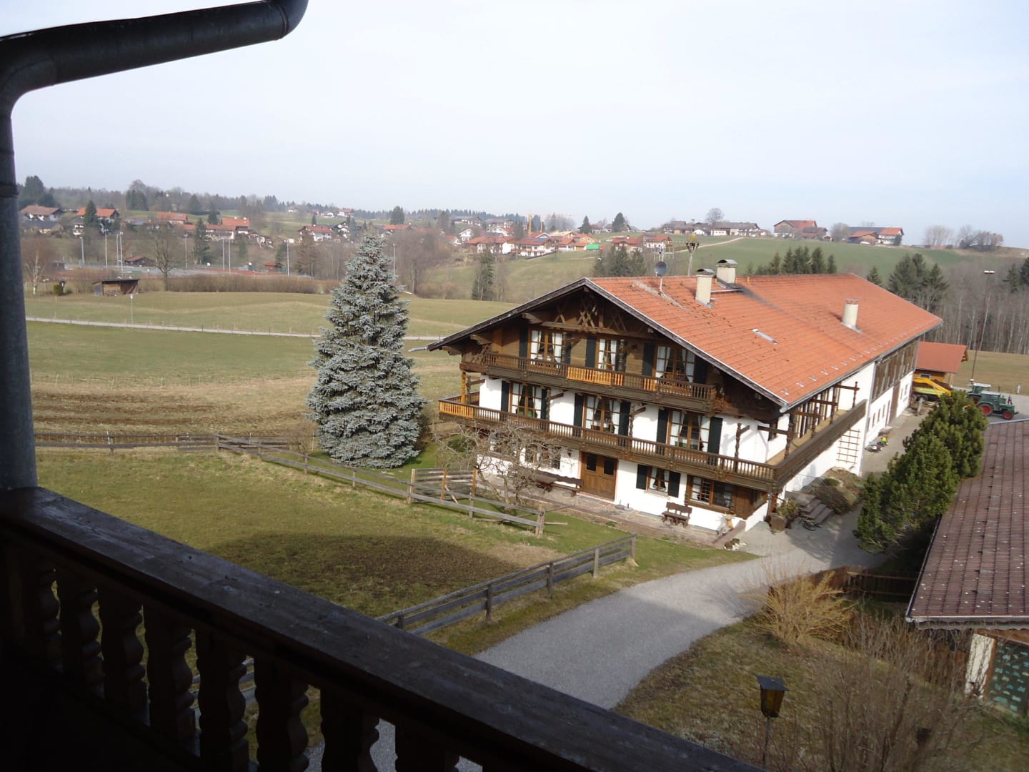 Sicht vom Balkon auf das Bauernhaus