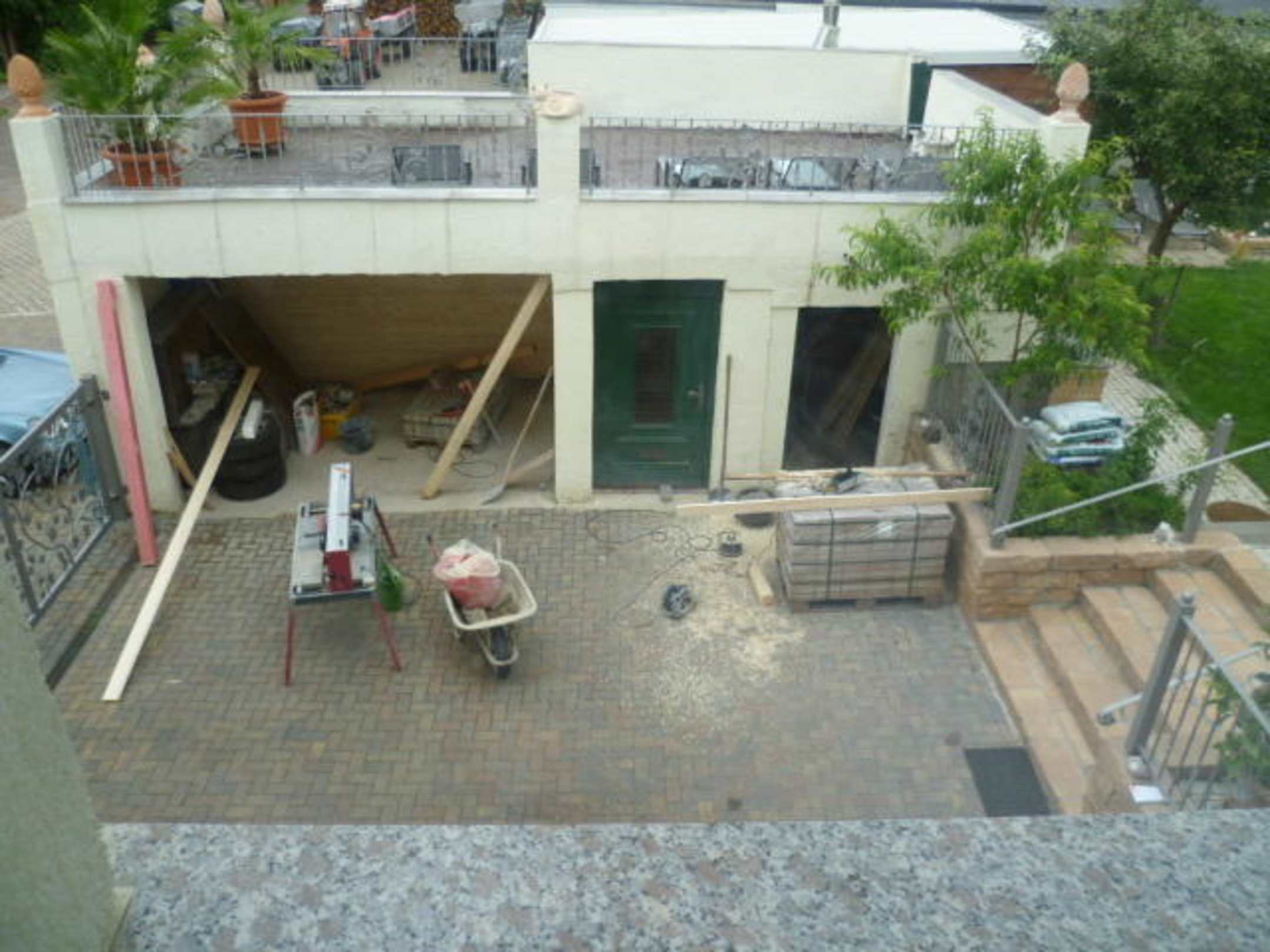 Blick in Innenhof bei Renovierarbeiten