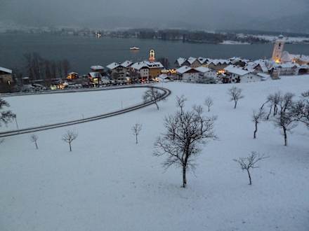 Blick vom Balkon auf den See und St. Wolfgang