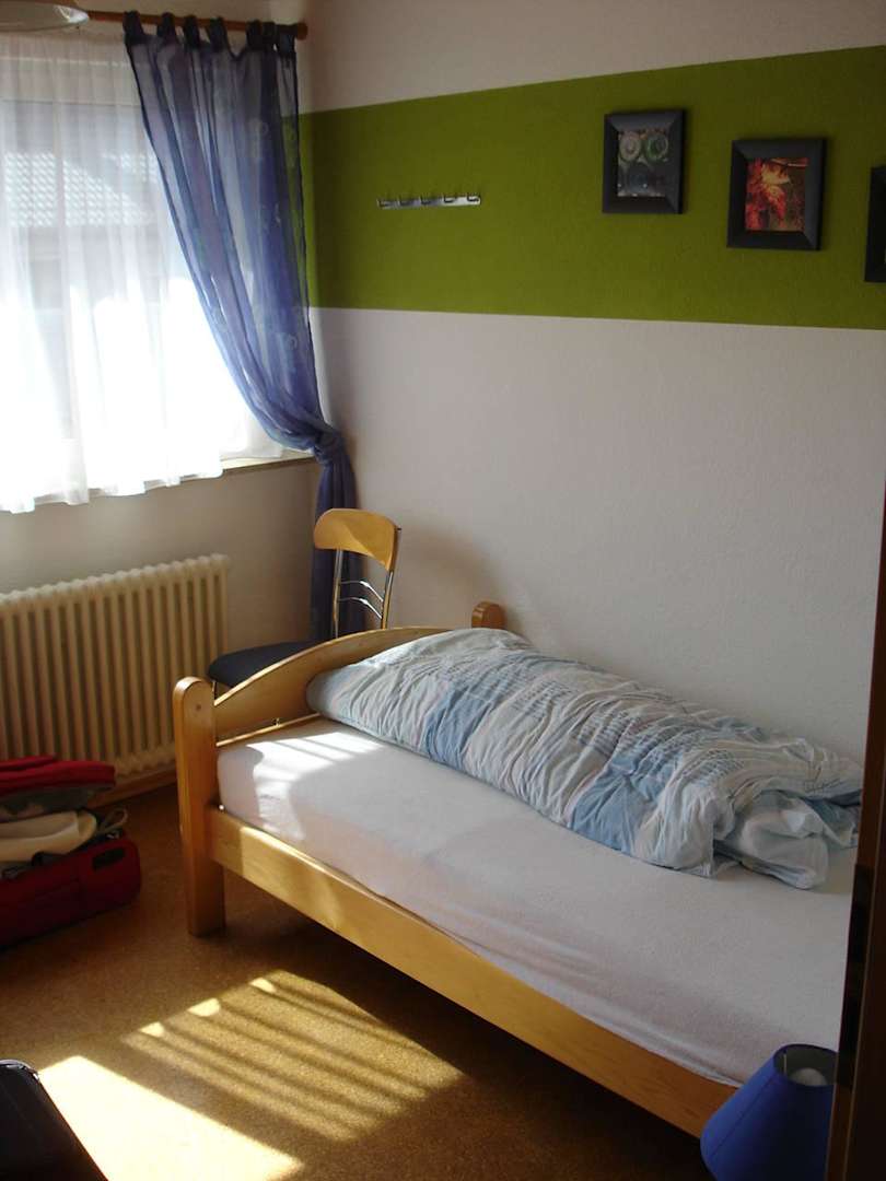 Die Wohnung Markgräflerland hat 2 Schlafzimmer: Ein "Elternzimmer" mit einem Doppelbett und ein "Kinderzimmer" mit zwei Einzelbetten