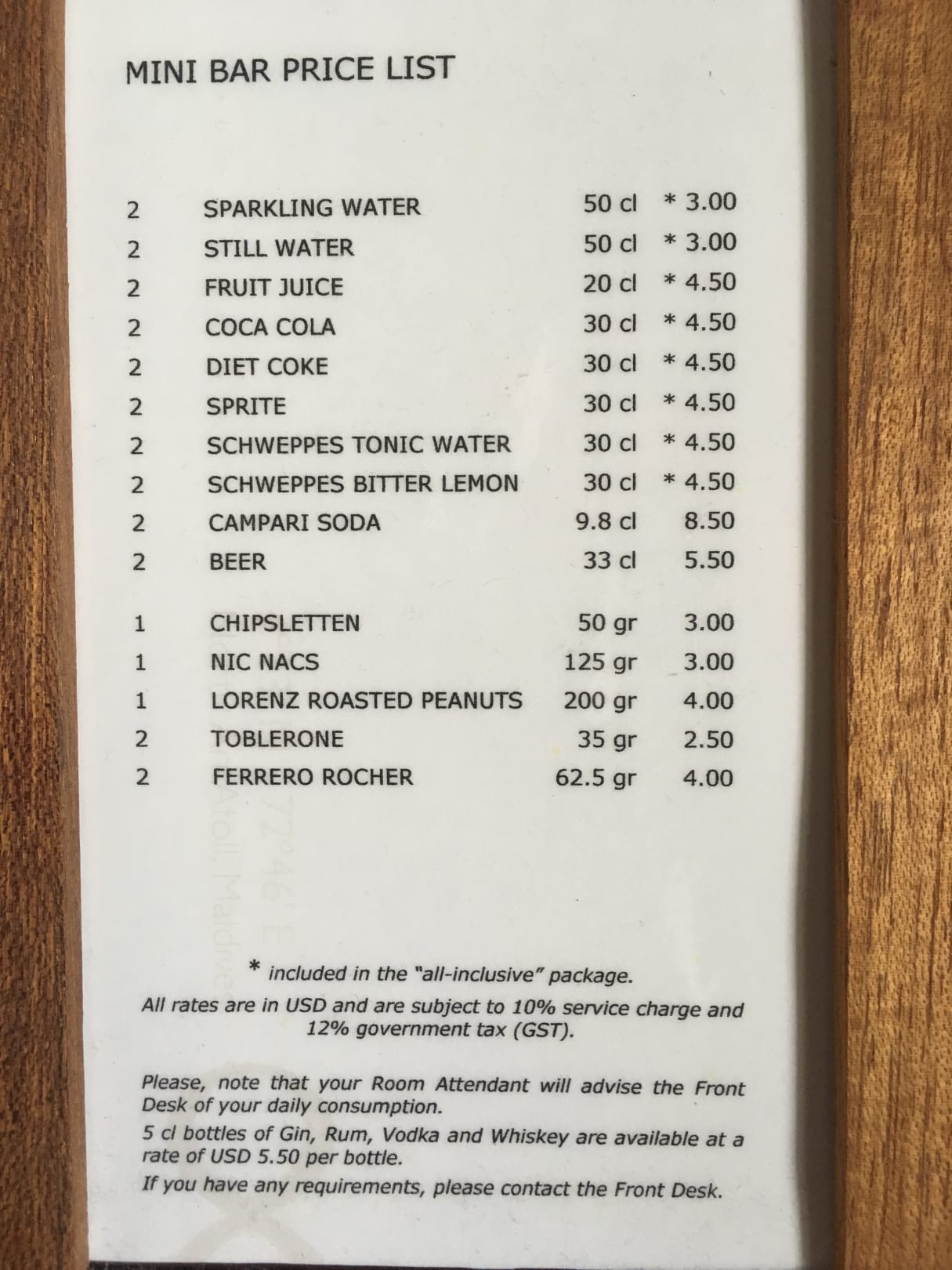 Preise Minibar