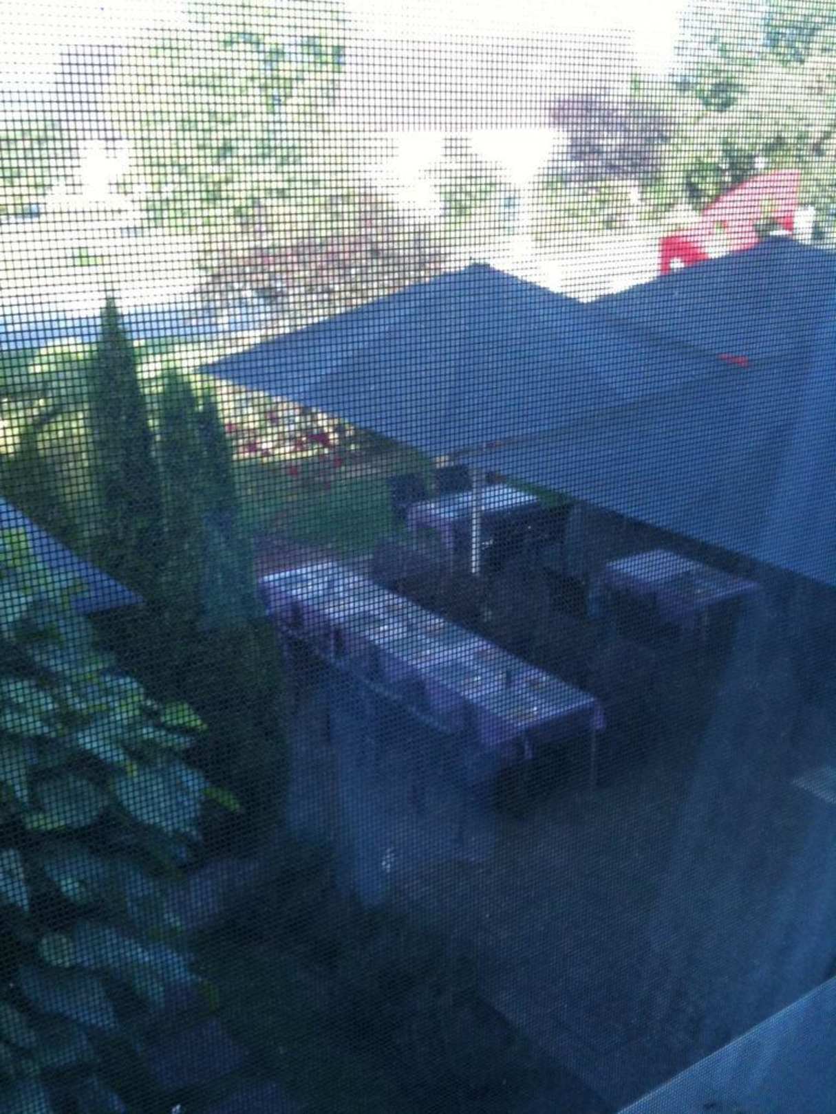 Nice view on the terrace from the bath room window. Windows are covered by nets to prevent insects from entering the room.