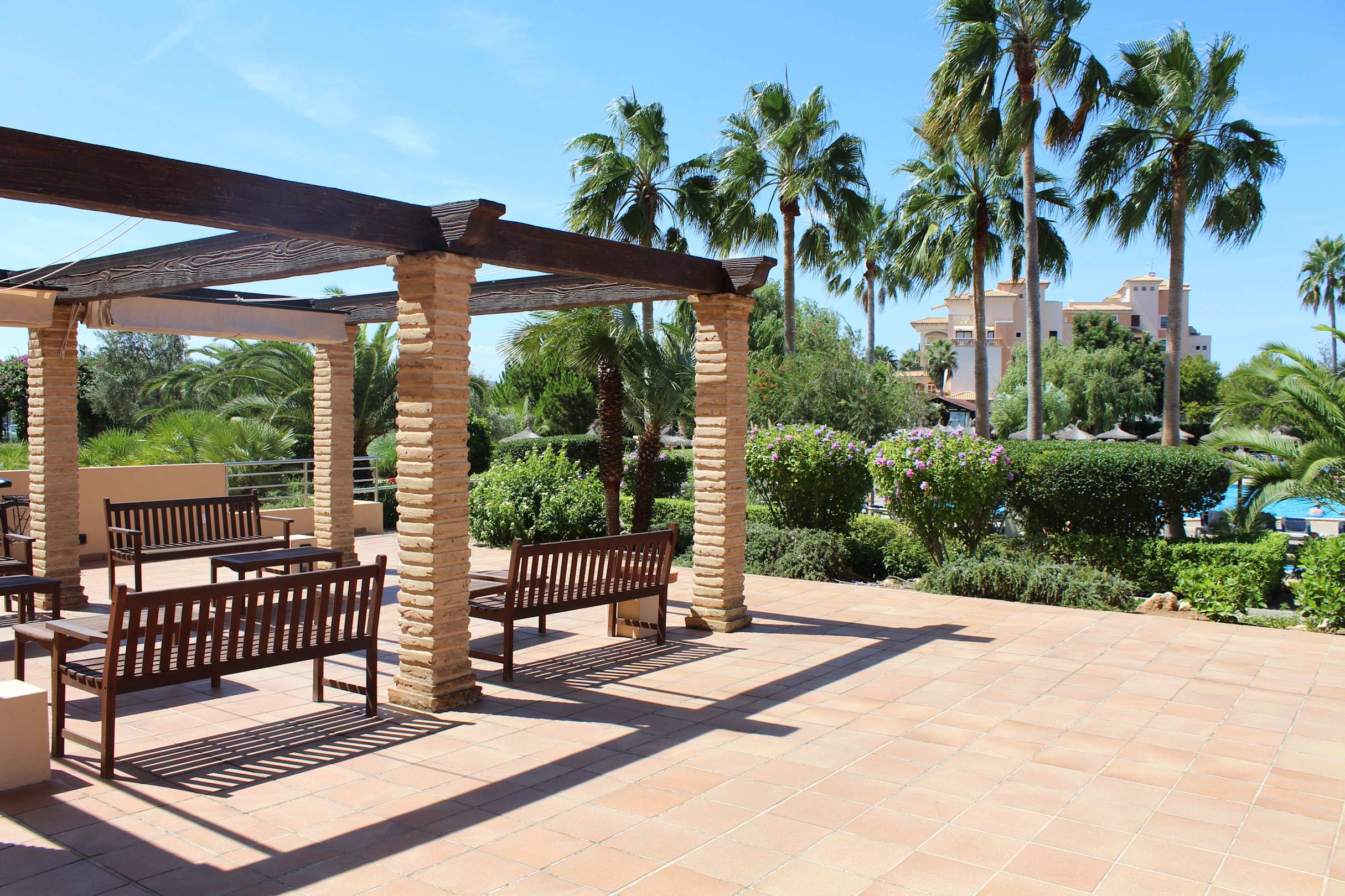 Sitzbereicht mit Blick auf den Pool