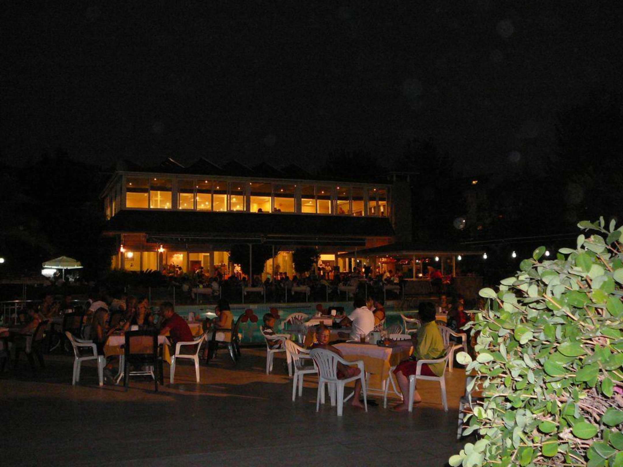 Im Vordergrund die Plätze für die Abendanimation-- im Hintergrund das Restaurant, wo viele Gäste gleich sitzenblieben und man keinen Platz zum Essen fand!!