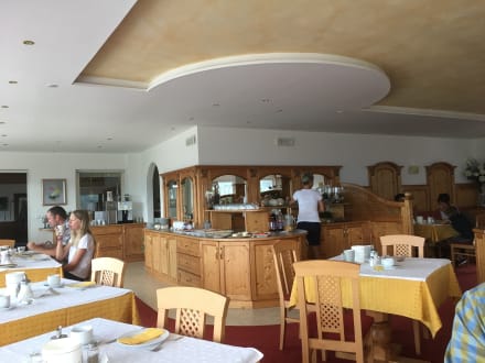Der sehr schöne Frühstücksraum mit dem Buffet