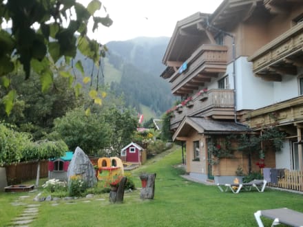 Schöne Gartenanlage mit Blick auf die Schmitten. Genug Platz für die Kinder zum spielen.