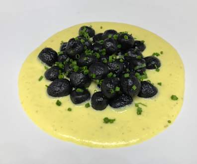 Falsche Olivengnocchi mit Carbonara