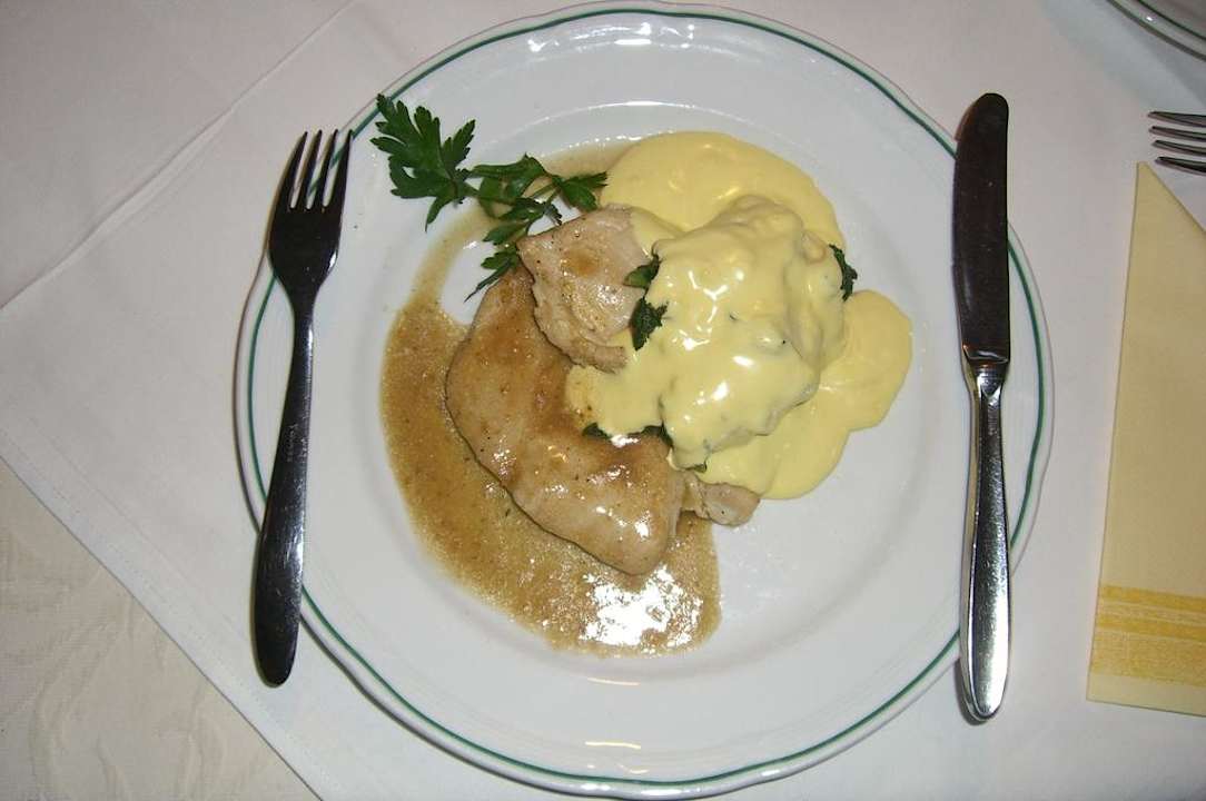 Hühnerbrustfilet an Spinat mit Hollandaisesoße. Sehr lecker!