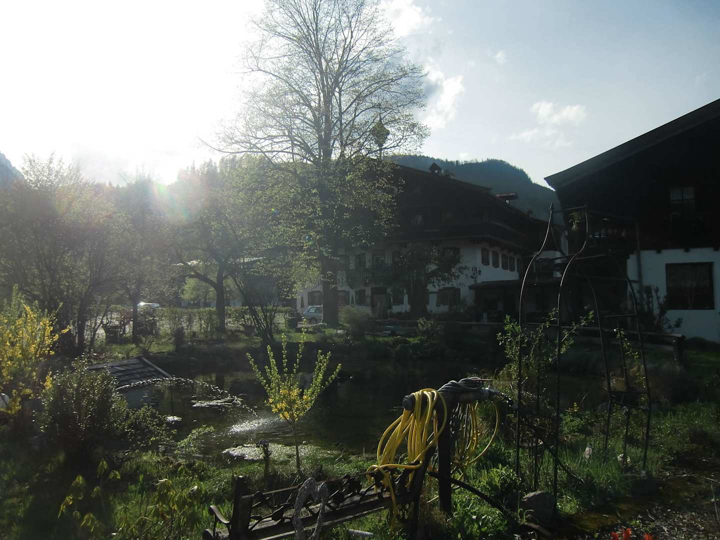 Blick über den Forellenteich zum Haupthaus