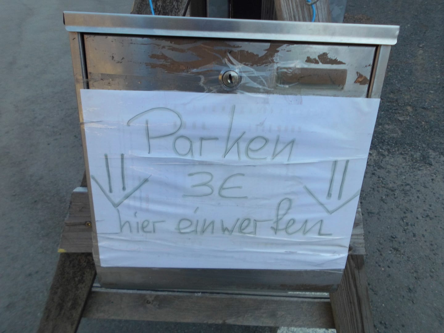 Der Gebührenkasten für den oberen Parkplatz für Tagesgäste
