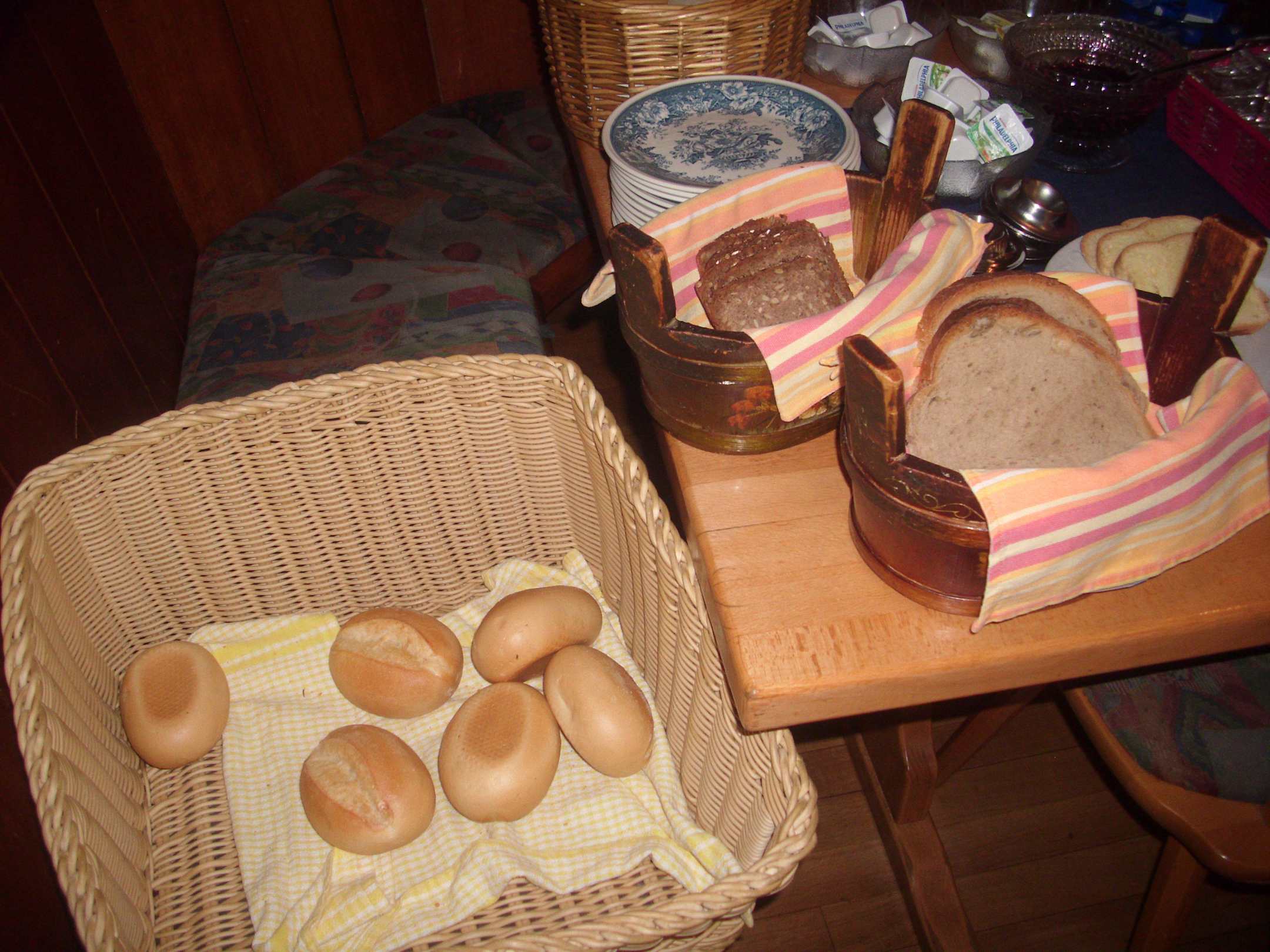 Teil vom Buffet. Links Bäckerbrötchen am Freitag