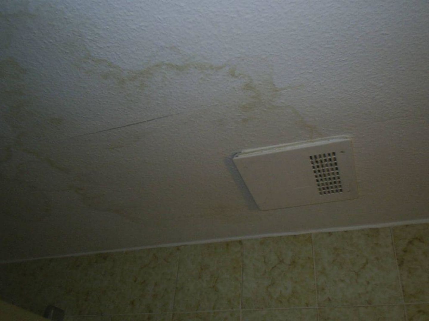 Decke im BadezimmerHier die Decke des Bad, bereich neben der Dusche. Warscheinlich handelt es sich um einen Wasserschaden im darüberliegenden Geschoss