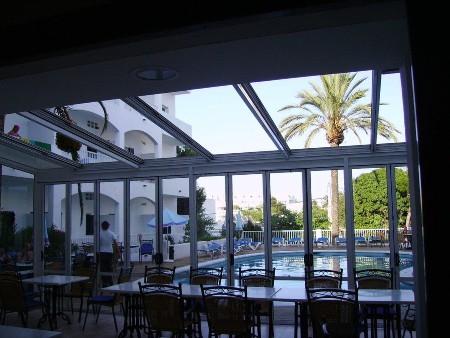 Blick aus dem Bar-Bereich auf den Pool