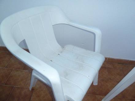 Die Gartenmöbel auf der Terrasse.
