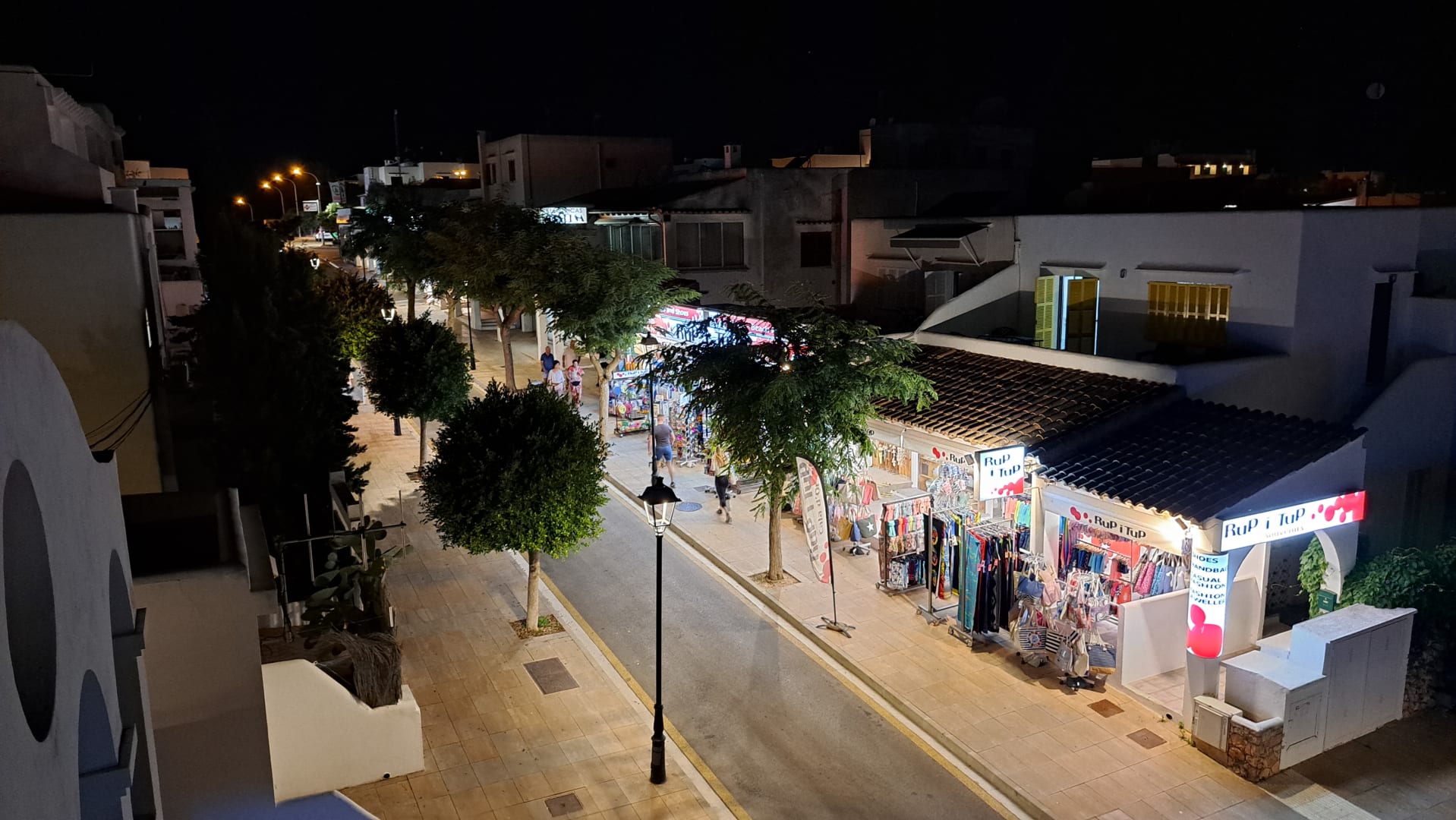 AusblickBlick nach links vom Balkon des Apartments 1322 im 2. Stock über der Rezeption auf die kleine Straße Carrer d'Ariel vor dem Hotel.
