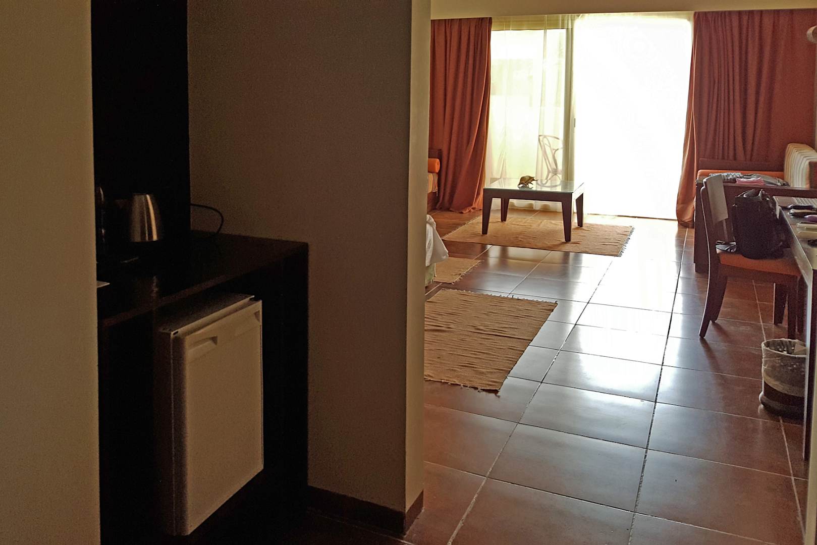Mit Kühlschrank, Wasserkocher und Teebeutel