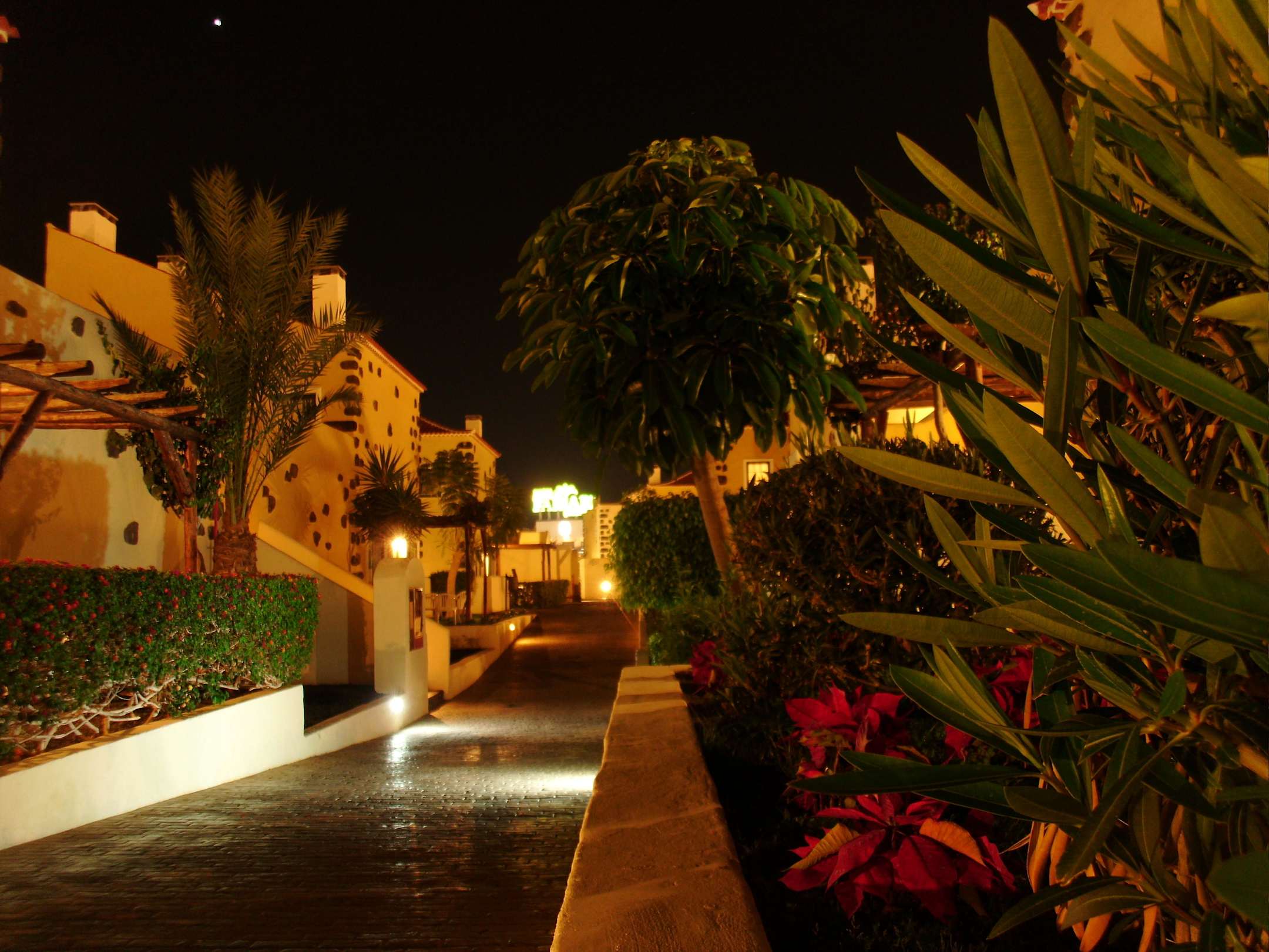 Wege zwischen den Häusern am Abend