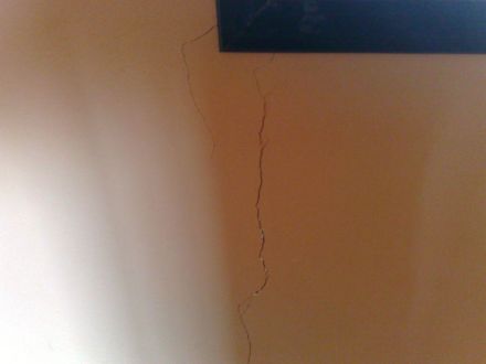 Schlafzimmerunter dem Fenster im Schlafzimmer ein großer Riss in der Wand.