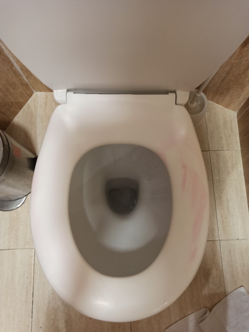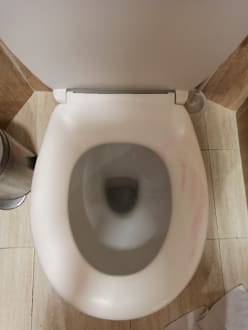 Rosa Dreck/Badreiniger NACH der "Reinigung" des Bades seitens des Reinigungspersonals.