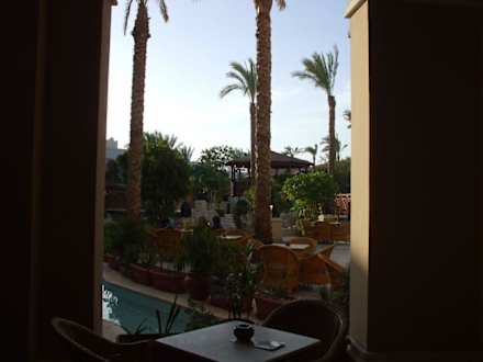 Blick von der Cafebar zur Poolanlage