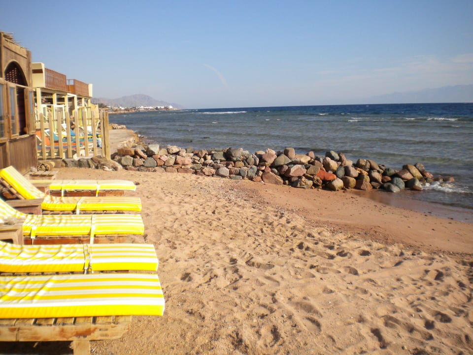 Hotelstrand ist nur Panorama fürs Frühstück oder für Drinks, weil Riff davor. Zum Schwimmen geht man 10 Minuten nach rechts. Dort ist einsamer Sandstrand.