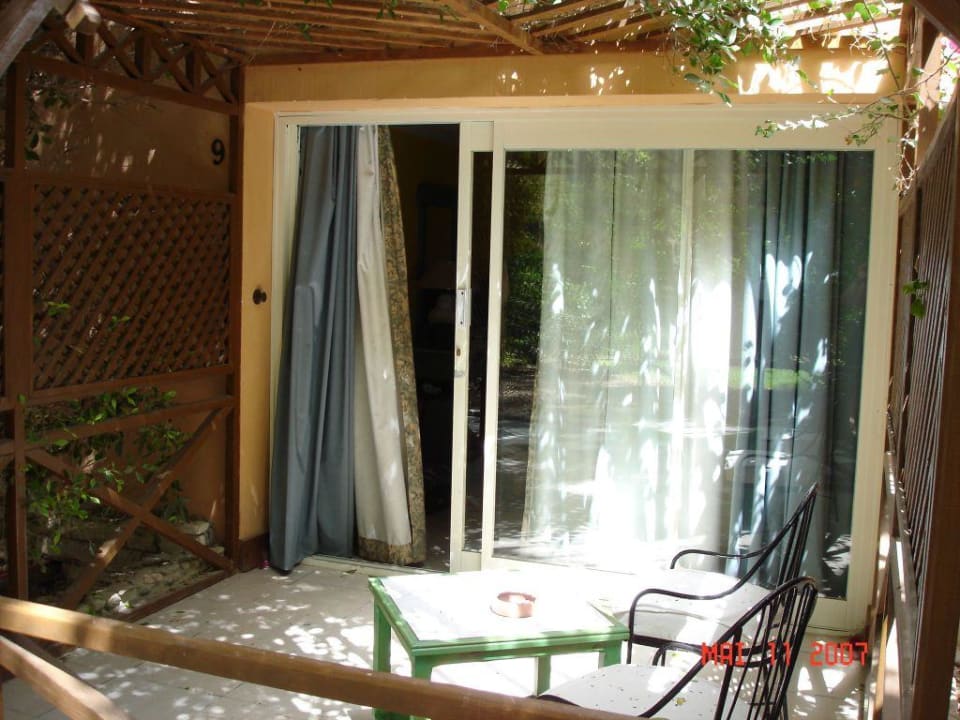 Aussenansicht unsers Bungalows. Mitten im Garten gelegen.