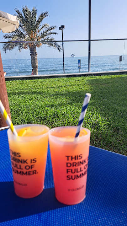 Cocktails auf der Liege im Garten mit Blick aufs Meer