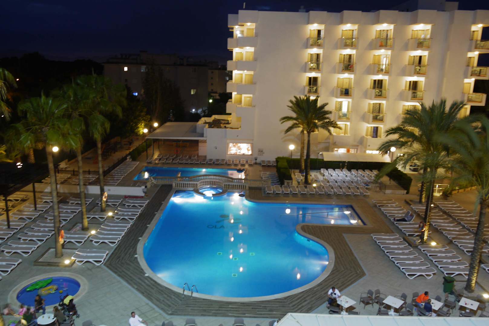 Pool und Hotel bei Nacht