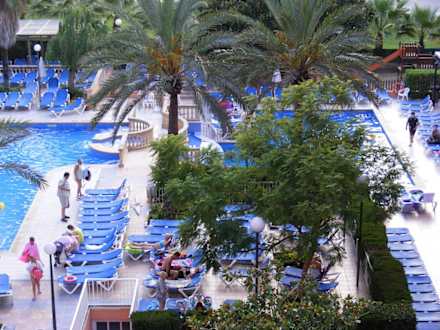 Blick vom Balkon zum Pool