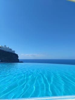 Blick auf den Pool, dahinter das Meer. Wirklich ein Traum! September 2023
