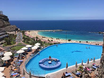Blick von der oberen Bar auf den Pool