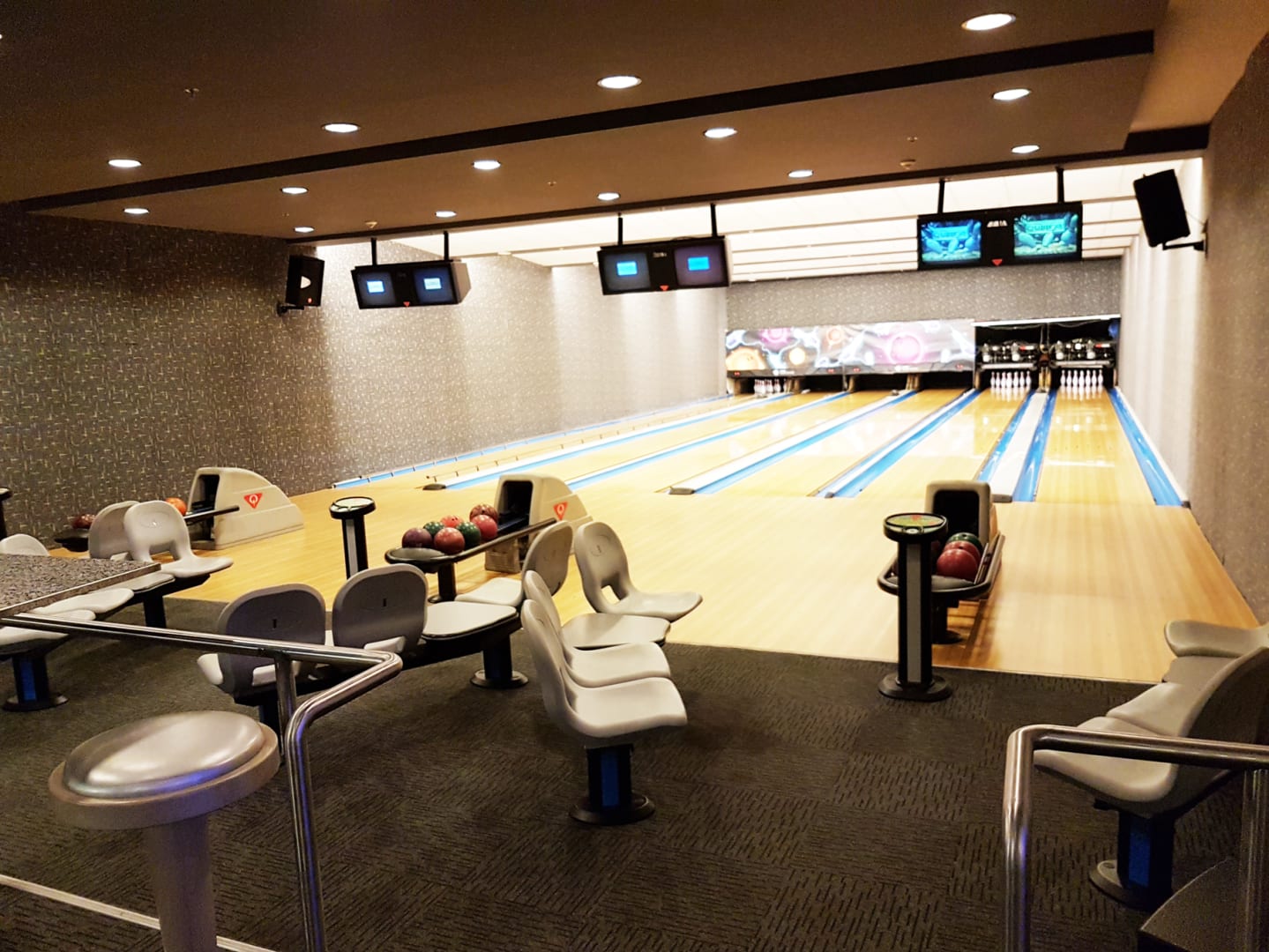 Die Bowling-Bahnen sind kostenpflichtig und schließen unmittelbar an das Spielecenter an.