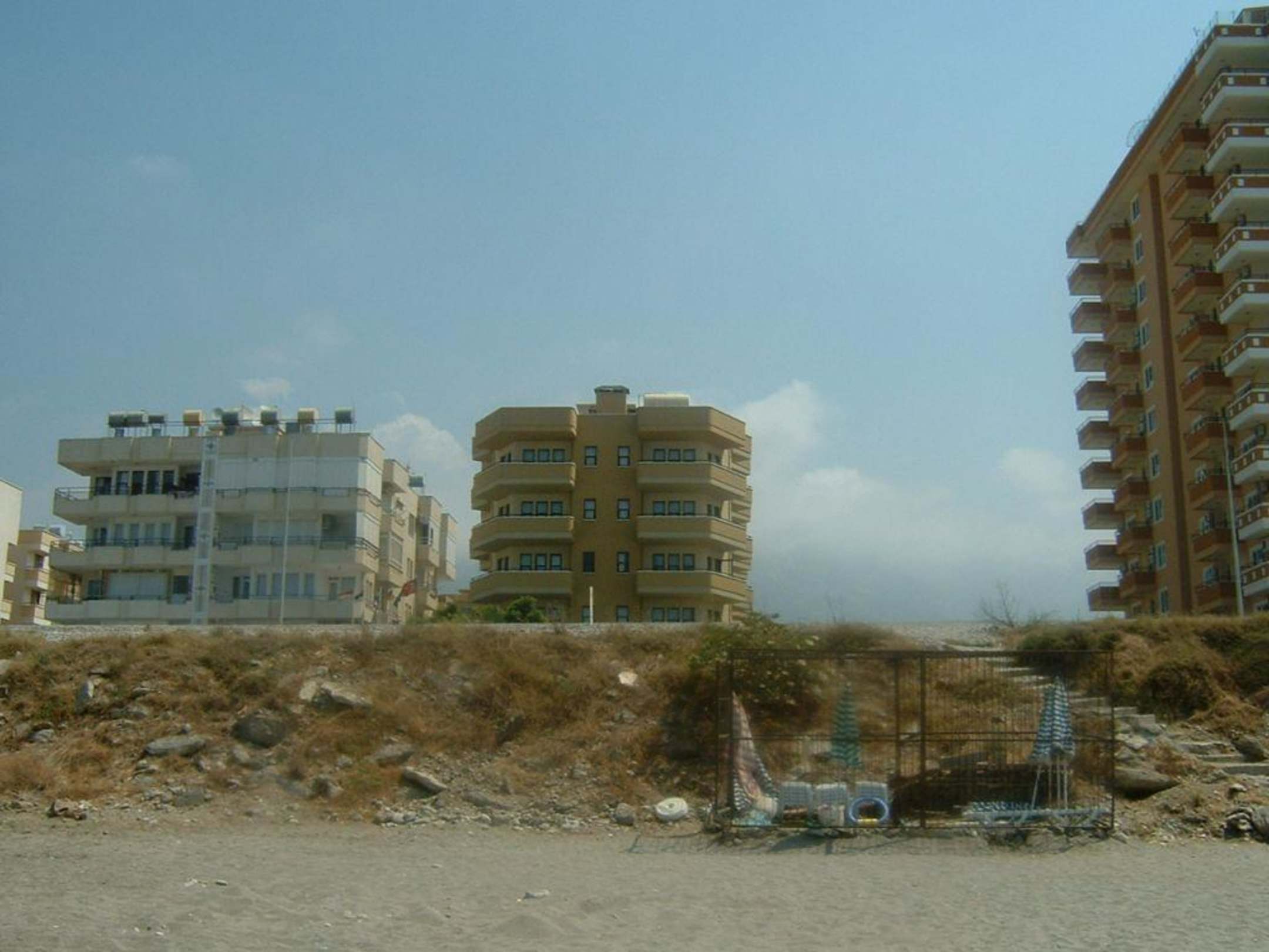 Ansicht vom StrandHier wo eigentlich die bewirtung für Al inklusiv hingehört steht ein Käfig für Liegestühle