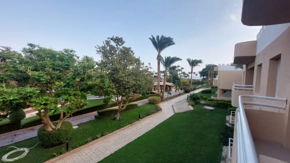 Ausblick vom Balkon zum Meer.