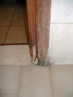 Der verschimmelte und vergammelte Türstock vom Bad