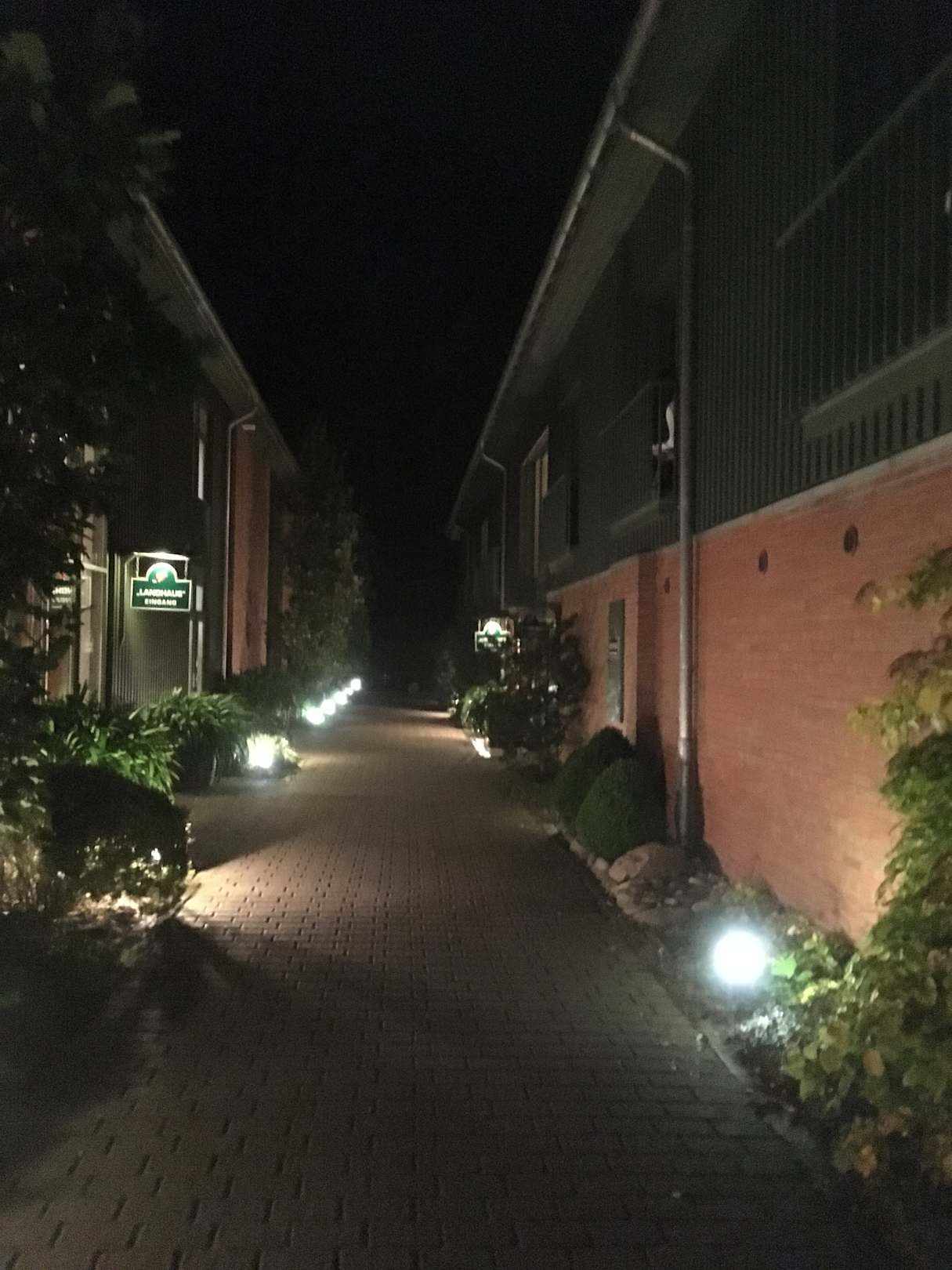 Links das Landhaus, rechts die Scheune mit diversen Zimmern