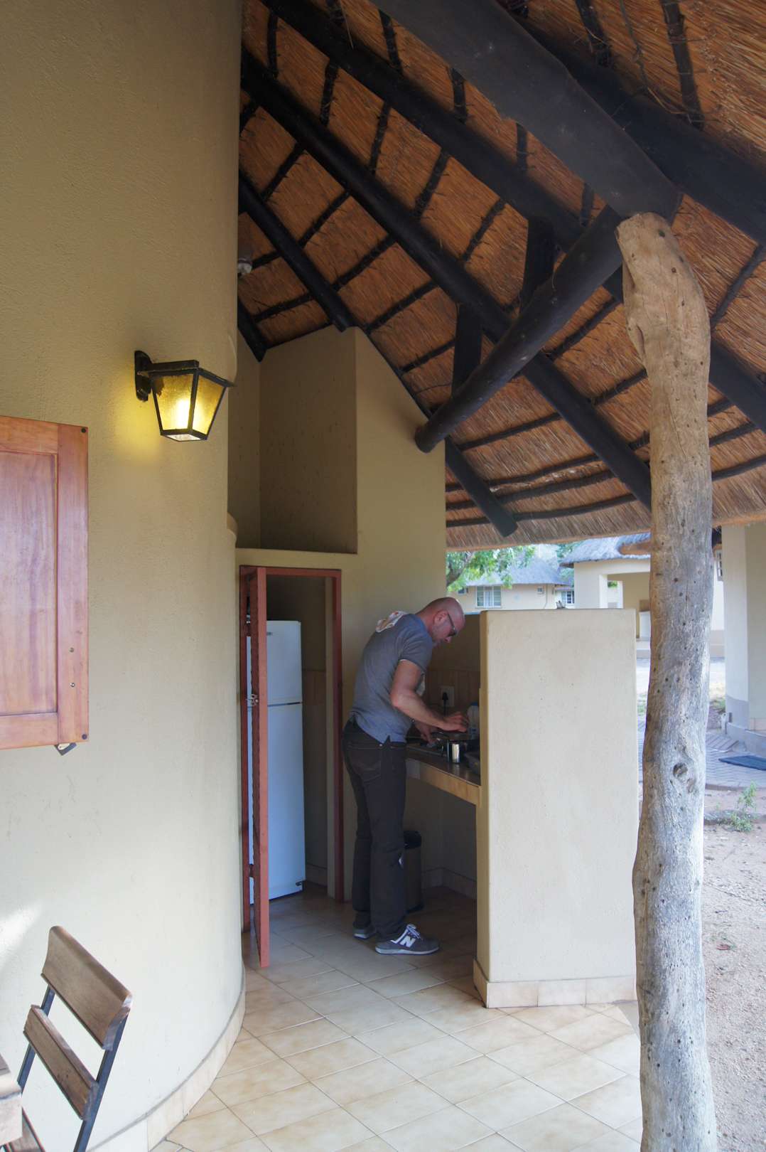 "Küche" - hinten der Kühlschrank - Affengesichert