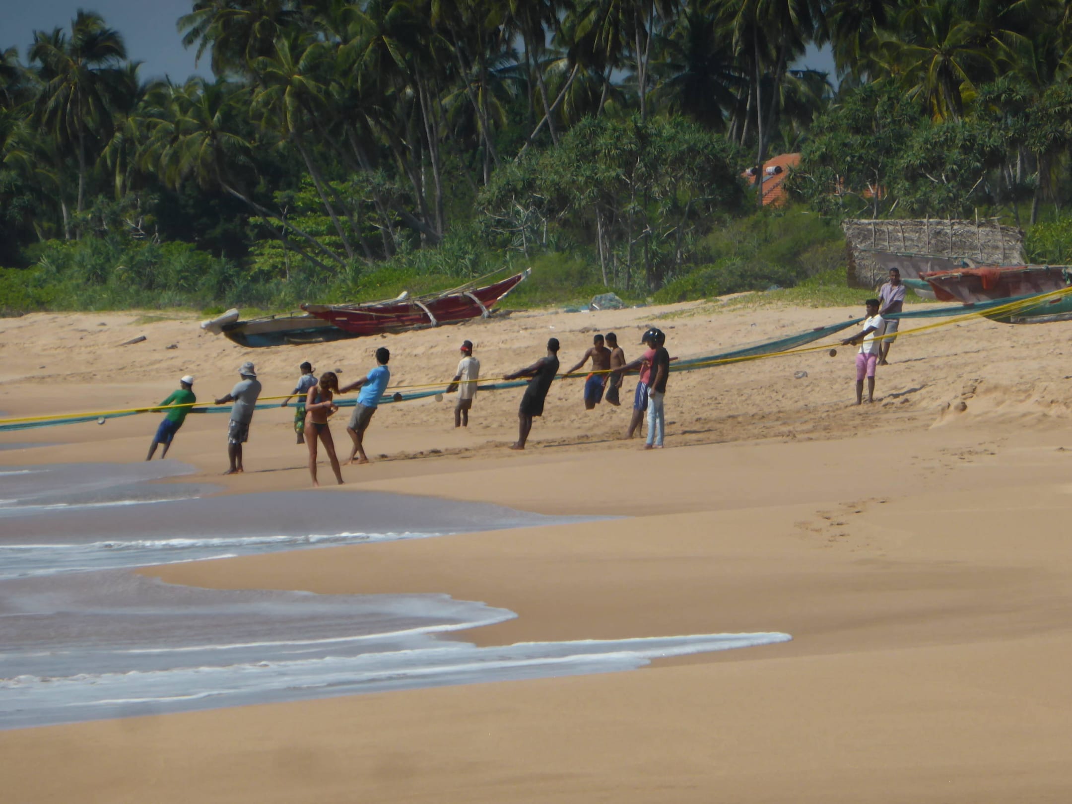 Fischer beim morgendlichen Netze einholenJeden Morgen kann man die Fischer am Strand beobachten, wenn sie die Netze einholen.