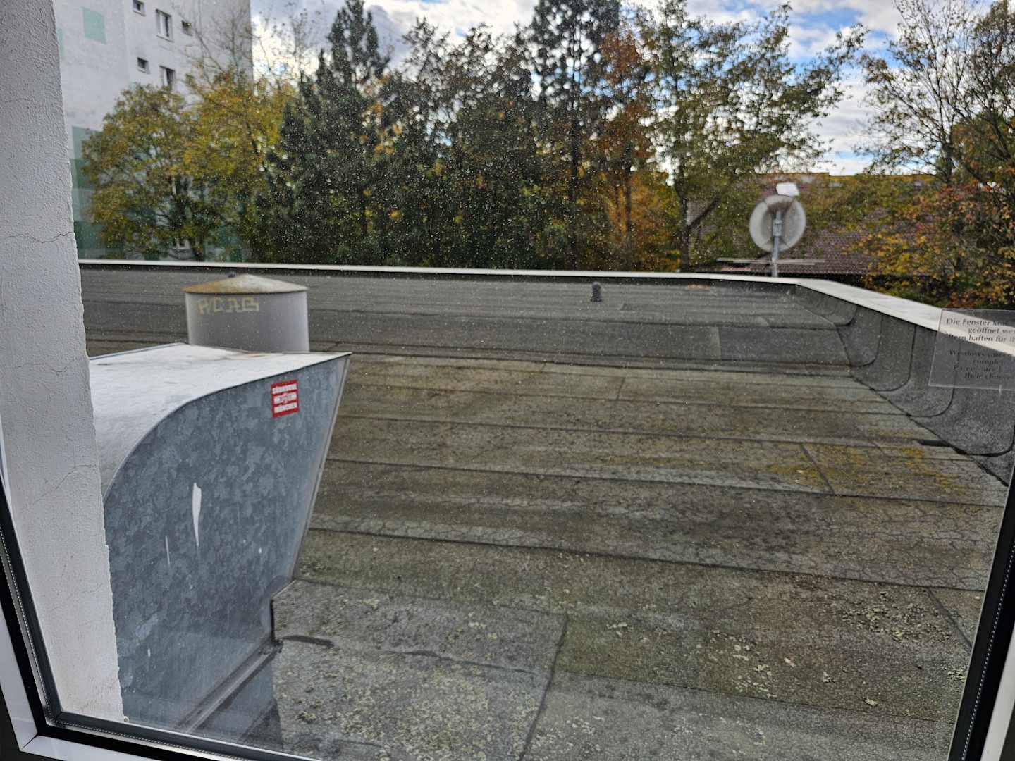 großes Lüftungskanalauslass direkt vor dem Fenster