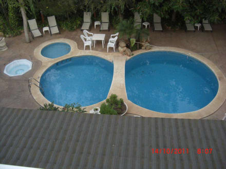 Blick vom Zimmer aufs Pool