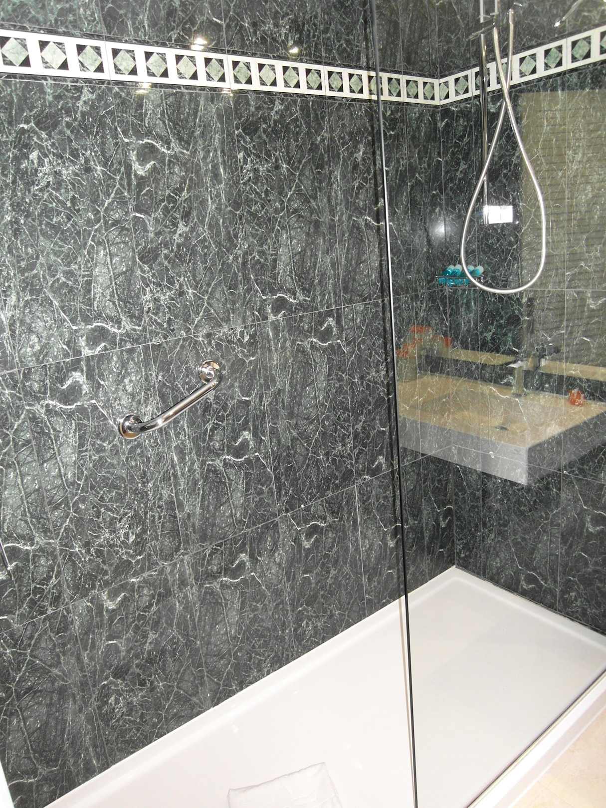 Große Dusche, fast bodeneben.