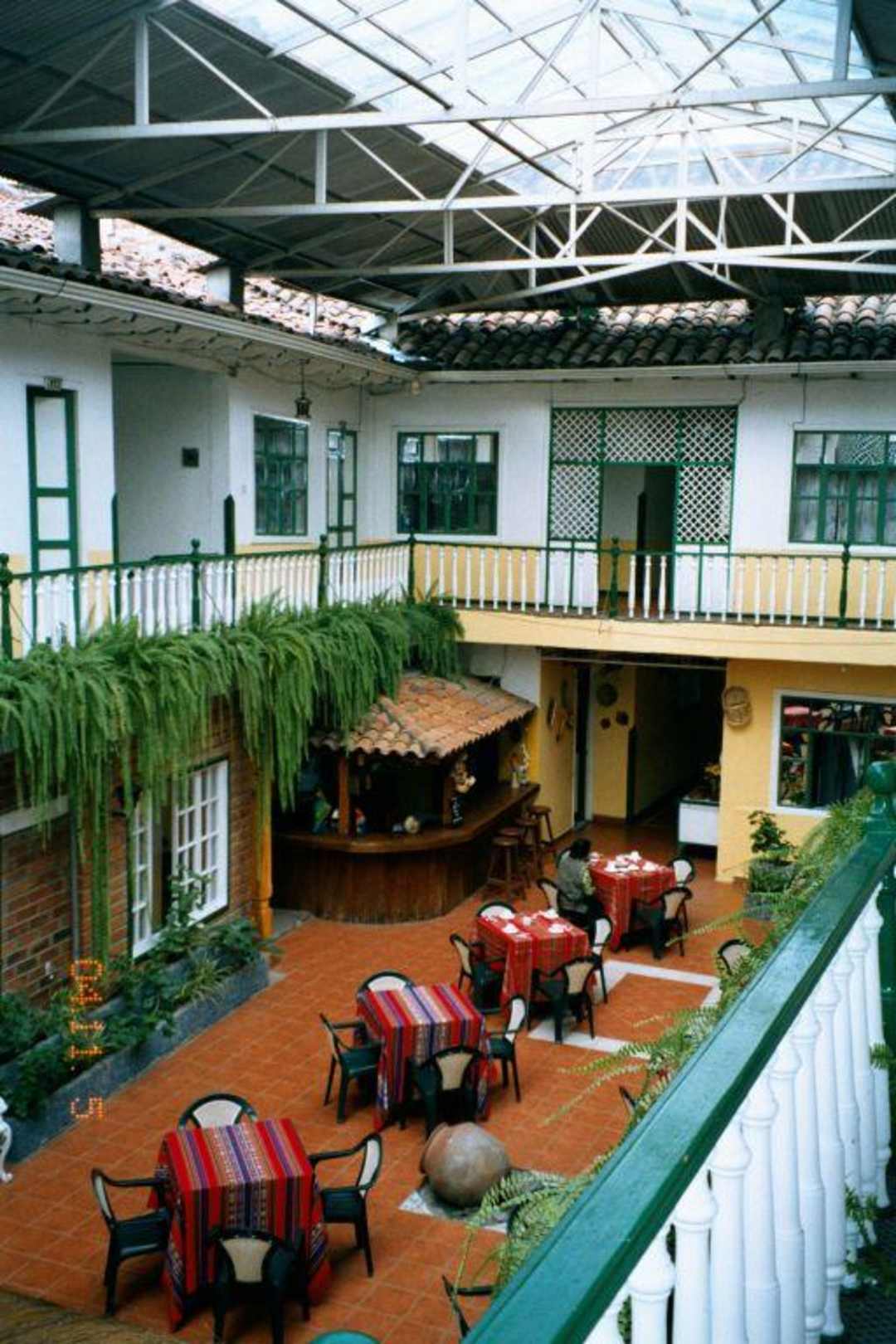 Blick zur Theke im lichtdurchfluteten RestoIn Cuenca gab es jeden Nachmittag ein Gewitter, da war das Glasdach Gold wert