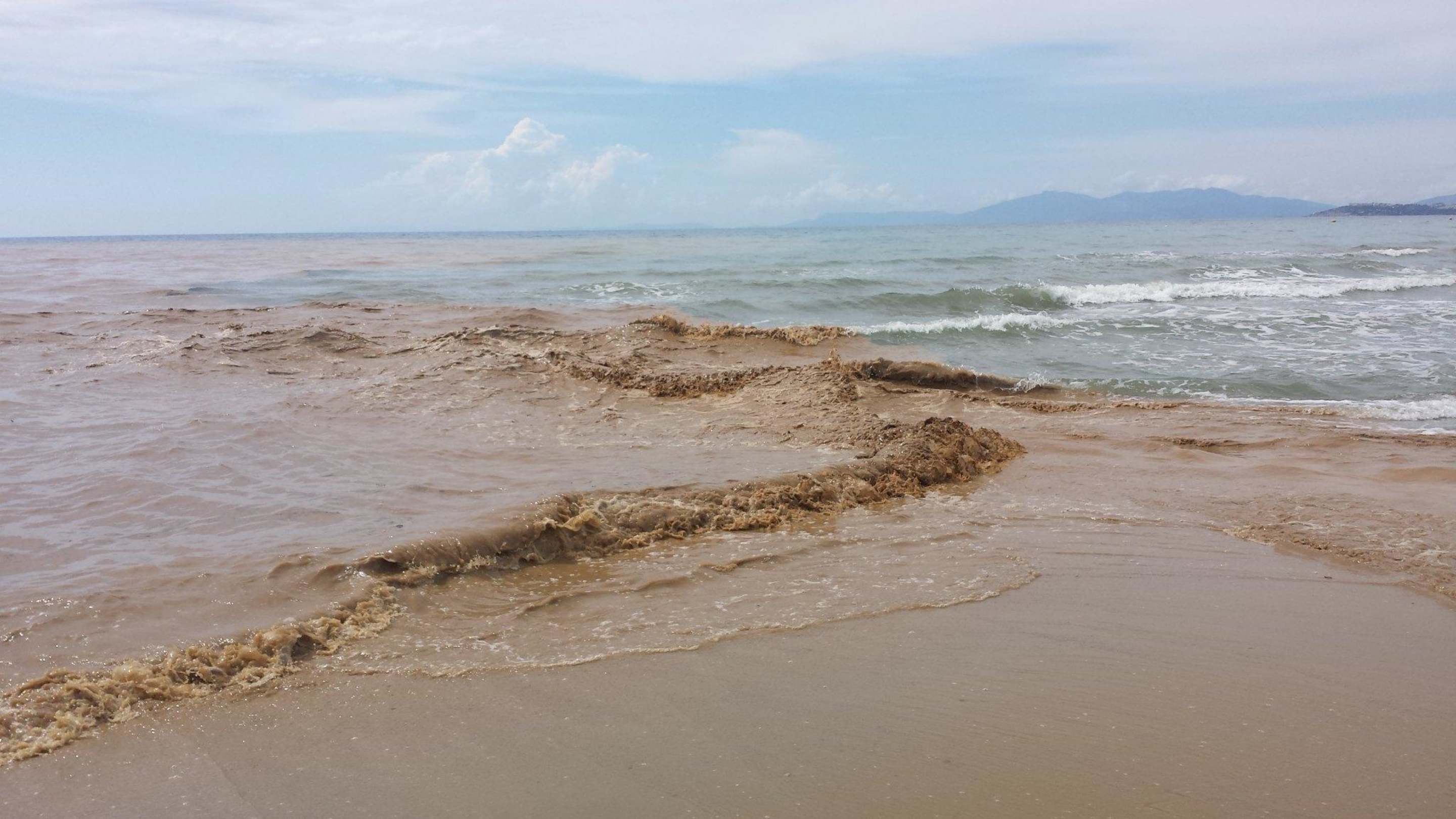 Strand mit verdreckten Wasser