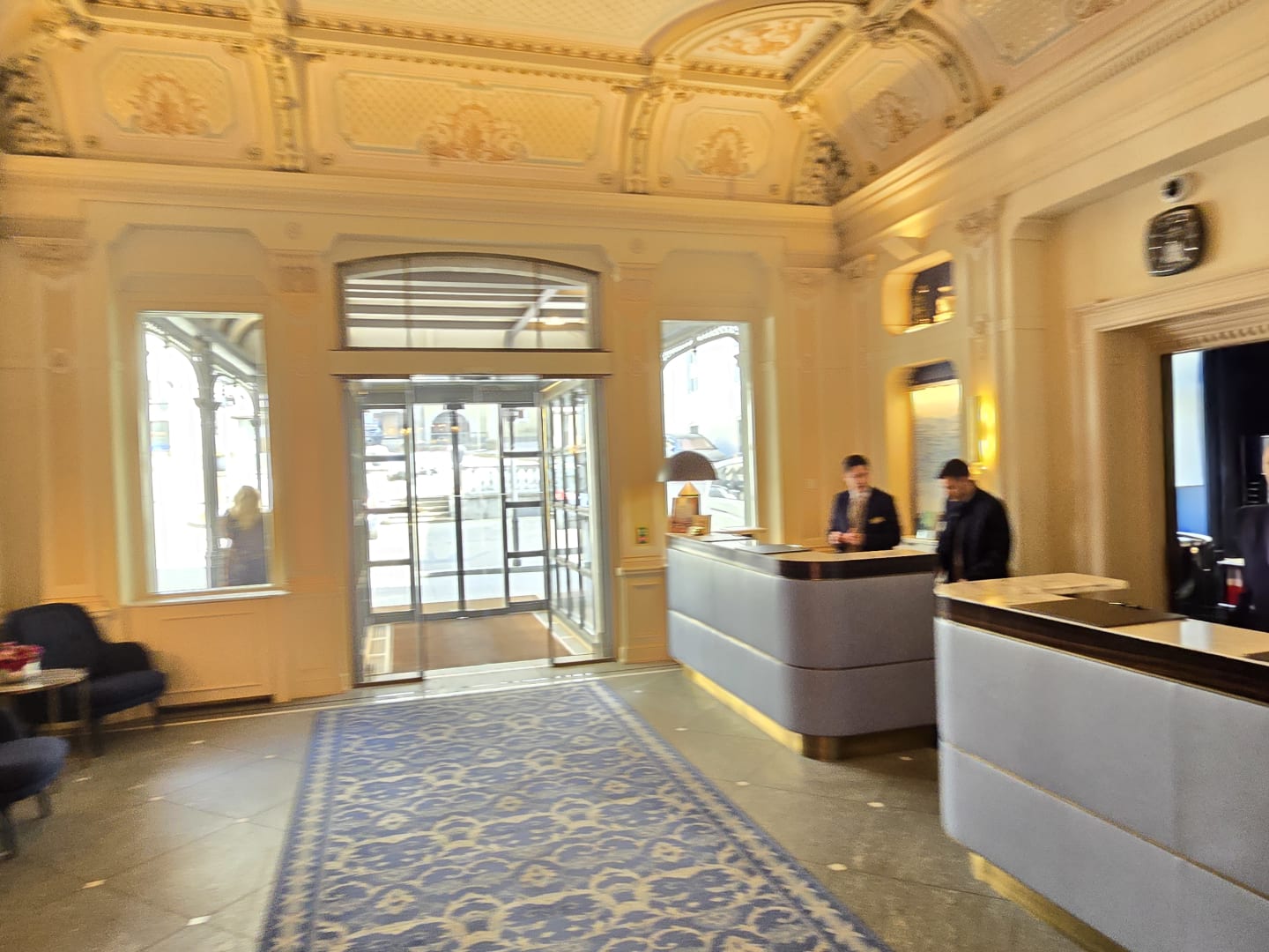 An der Rezeption arbeiten emsig viele Concierge, damit sich die Gäste wohl fühlen; diese waren natürlich damit einverstanden, als sie auf die mögliche Publikation des Fotos aufmerksam gemacht wurden.